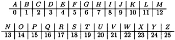 Finally, we convert the sequence of integers to alphabetic characters, obtaining the ciphertext: