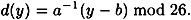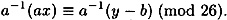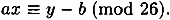Consider our congruence y ≡ ax + b (mod 26). This is equivalent to