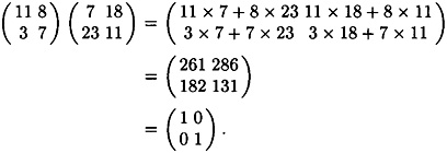 We say that the ciphertext is obtained from the plaintext by means of a linear transformation. We have to consider how decryption will work, that is, how x can be computed from y. Readers familiar with linear algebra will realize that we use the inverse matrix K-1 to decrypt. The ciphertext is decrypted using the formula x = yK-1.