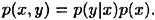 DEFINITION 2.1 Suppose X and Y are random variables. We denote the probability that X takes on the value x by p(x), and the probability that Y takes on the value y by p(y). The joint probability p(x, y) is the probability that X takes on the value x and Y takes on the value y. The conditional probability p(x|y) denotes the probability that X takes on the value x given that Y takes on the value y. The random variables X and Y are said to be independent if p(x, y) = p(x)p(y) for all possible values x of X and y of Y.