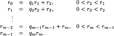 First, we describe the Euclidean algorithm, in its basic form, which is used to compute the greatest common divisor of two positive integers, say r0 and r1, where r0 > r1. The Euclidean algorithm consists of performing the following sequence of divisions: