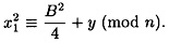 Here we again make use of Eulers criterion, which says that if C is a quadratic residue modulo p, then C(p-1)/2 ≡ 1 (mod p). Hence, the two square roots of 7 modulo P are ±C(p+1)/4 mod p. In a similar fashion, the two square roots of 7 modulo q are ±C(q+1)/4 mod q. It is then straightforward to obtain the four square roots x1, of C modulo n using the Chinese remainder theorem.