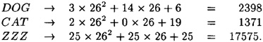 a message to Bob by representing each alphabetic character as an integer between 0 and 25 (i.e., A ↔ 0, B ↔ 1, etc.), and then encrypting each residue modulo 26 as a separate plaintext character.