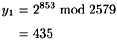 When Bob receives the ciphertext y = (435, 2396), he computes