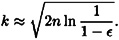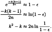 If we denote this probability by ∈, then we can solve for k as a function of n and ∈.