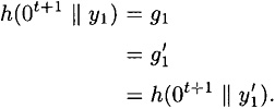 But the (t + 1)st bit of 0t+1 || y1 is a 0 and the (t + 1)st bit of