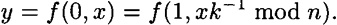 As before, Peggy encrypts a value b by choosing a random x and computing the blob y = f(b, x). In this scheme all the blobs are quadratic residues. Further, any y ∈ QR(n) is both an encryption of 0 and an encryption of 1. For suppose y = x2 mod n and m = k2 mod n. Then